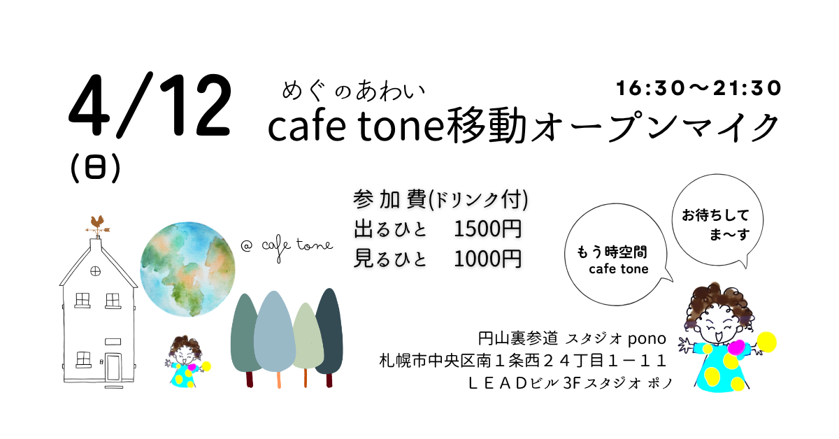 4/12(日) cafe toneオープンマイクのご案内